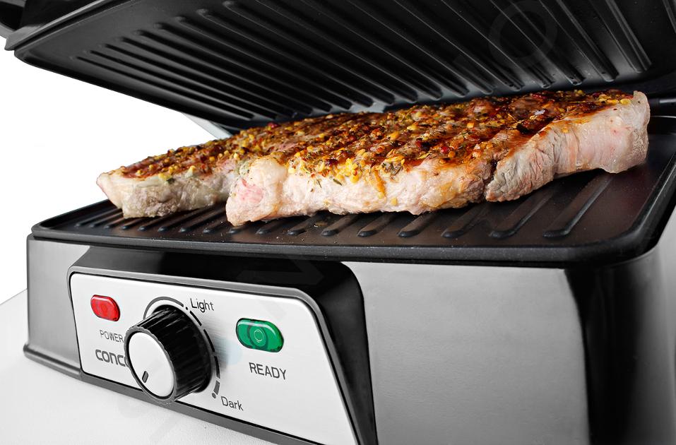 Parrilla de contacto eléctrica color acero inoxidable/negro placas de... Mostrar toda la descripción