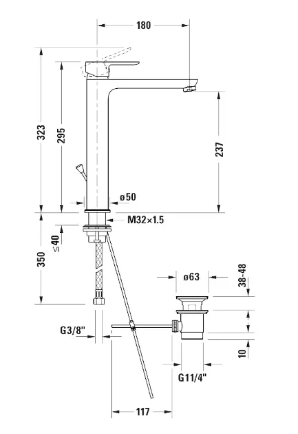 Grifo de pie para lavabo con desagüe color cromo altura del grifo 295... Mostrar toda la descripción