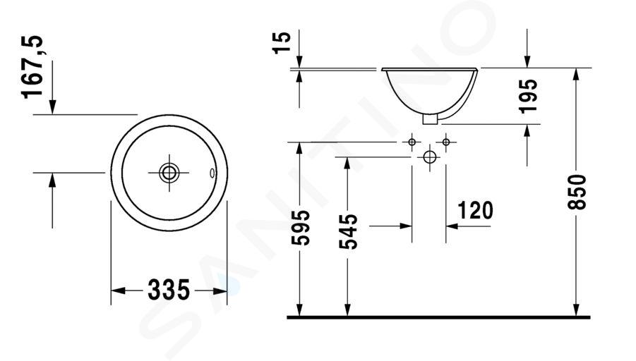 Lavabo sin orificio diámetro 335 mm para incorporar desde arriba con... Mostrar toda la descripción