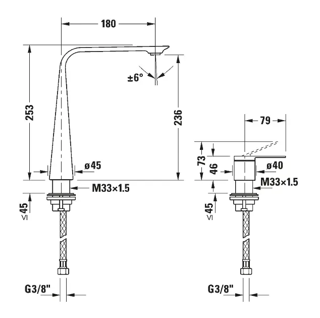 Sobre lo que significa el auténtico lujo —esa fusión de líneas atemporales, funcionalidad perfecta y…— le convencerán los grifos de lavabo de la serie Duravit D.1. Ofrecen posibilidades que quizás ni se había atrevido a imaginar. El diseño de estos grifos se inspira en la naturaleza, pero conserva todos los atributos de un enfoque moderno y contemporáneo. Las formas curvas se combinan de manera original con superficies planas, garantizando que se conviertan en la estrella de su baño, tanto si elige el acabado en negro como en cromo. Están disponibles en versiones electrónicas para lavabo y en modelos monomando de dos orificios para repisa. Todos impresionan con la función AquaControl, un aireador con inclinación regulable. También incluyen iluminación LED en el botón de control, que indica la temperatura del agua. Y, por último, incorporan una función de enjuague higiénico.