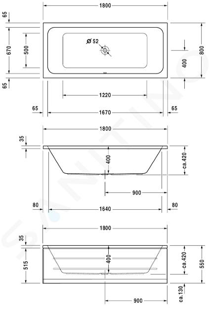 Bañera rectangular acrílica dimensiones: 1800 x 800 mm profundidad:... Mostrar toda la descripción