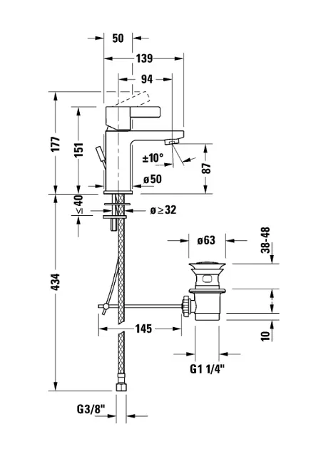 Grifo de lavabo de pie con desagüe