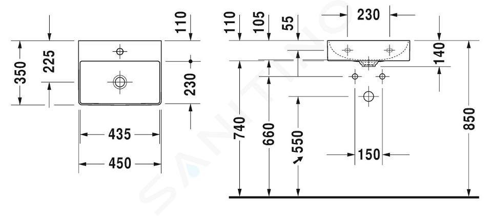 Lavamanos suspendido sin rebosadero dimensiones: 450 x 350 x 140 mm... Mostrar toda la descripción
