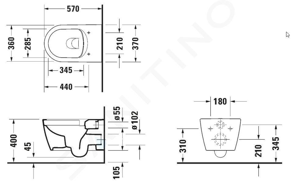 La innovadora tecnología de descarga Duravit Rimless® combina la geometría y la mecánica con un diseño abierto para lograr la máxima eficiencia en la descarga. El agua fluye en un arco horizontal y luego verticalmente hasta que toda la superficie interior de la taza se enjuaga.