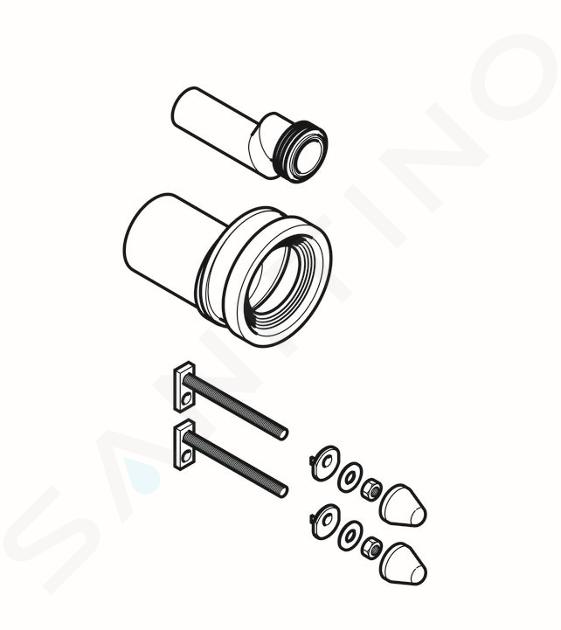 Juego de conexión de desagüe para inodoro suspendido, con material de fijación, excéntrico