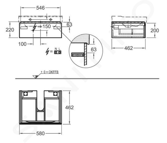 Armario suspendido bajo el lavabo con cajones con iluminación LED
