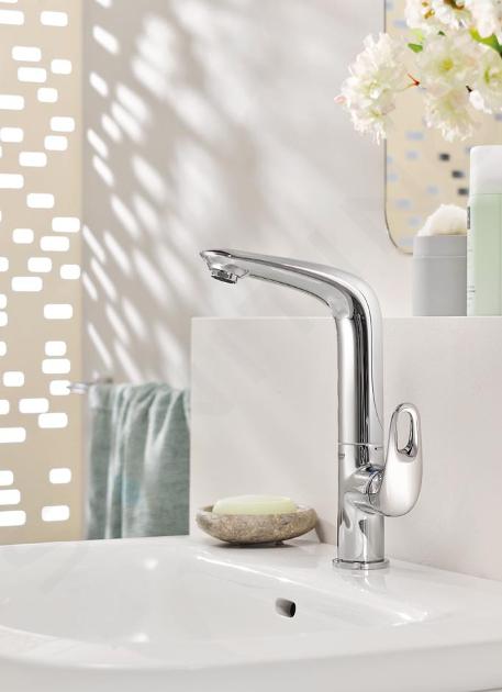 Los grifos monomando de la serie Eurostyle son elegantes, prácticos y confiables. Un cartucho de cerámica garantiza un control suave y preciso de la palanca. Las tecnologías modernas se encargan de la seguridad y de ahorro de agua y energías. Tienen caños de diferentes alturas para cumplir con tus necesidades. Para mantener el mismo estilo de tu baño puedes elegir un grifo de lavabo, de ducha, de bañera o de bidé de la misma serie, de superficies cromadas o blancas.