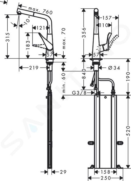 En el caso de los grifos de cocina, la ComfortZone se desarrolla en tres direcciones: la altura del grifo, la función giratoria y la ducha/caño extraíble. El caño alto ofrece un espacio especialmente amplio para los grifos y es ideal para llenar recipientes. La ducha extraíble y el caño extraíble amplían el rango de uso del grifo, que es adecuado para regar las plantas, etc.
