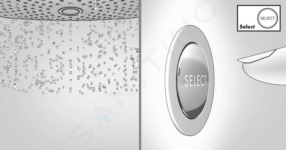 Cambia el tipo de chorro o el tipo de ducha con un solo apretón. Con el botón Select, los grifos se pueden controlar muy fácilmente. Pulsar el botón no sólo inicia y detiene el agua, sino que también puede utilizarse para cambiar entre los distintos tipos de chorros de una teleducha o rociador. Con el grifo termostático, esta tecnología integrada permite iniciar y detener el flujo de agua con absoluta precisión y seleccionar las diferentes duchas. Si es necesario, puedes controlar el grifo sin usar las manos, ya que el botón se puede accionar intuitivamente con el brazo o el codo. El botón Select de Hansgrohe garantiza la sencillez en el día a día y es ideal para quienes aprecian una experiencia de ducha cómoda y agradable.