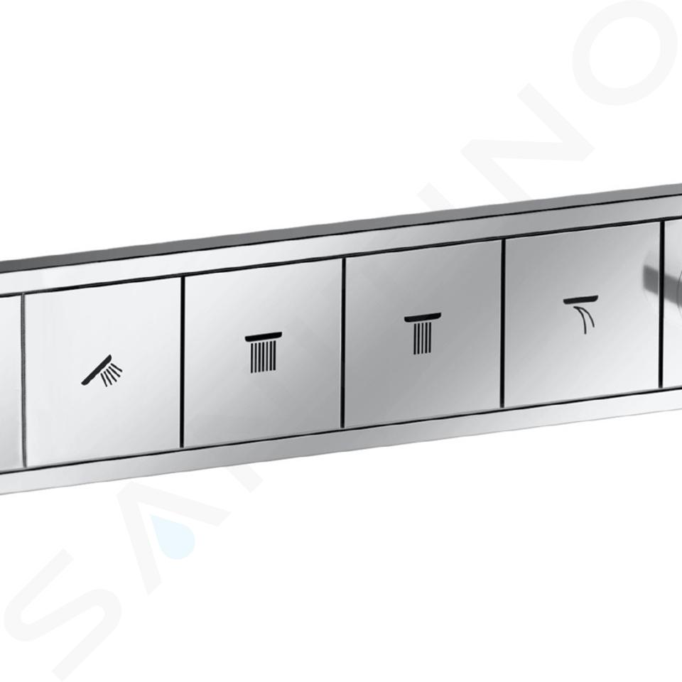 Los grifos termostáticos empotrados de la serie RainSelect están diseñados para todos los amantes del diseño. Destacan por un estilo único que consiste en rejillas rectangulares, en las que se ubican los mandos de control individuales, para hasta 5 funciones. Los grifos tienen tecnologías para reducir el consumo de agua mientras mantienen una presión de agua suficiente fuerte. También están equipados con un sistema de seguridad y un limitador de temperatura. Esta serie se encargará de tu relajación. Puedes elegir entre varias superficies.