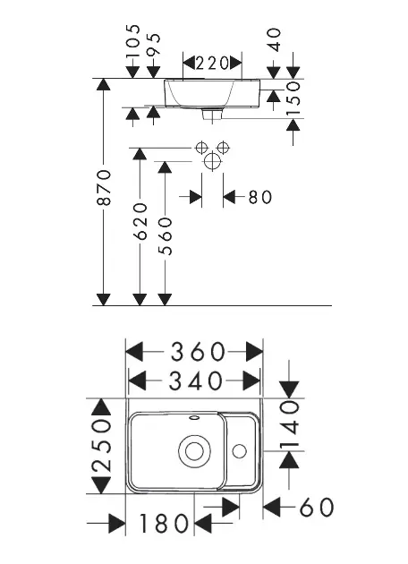 Lavamanos 360/250 con orificio para grifo, con rebosadero, SmartClean