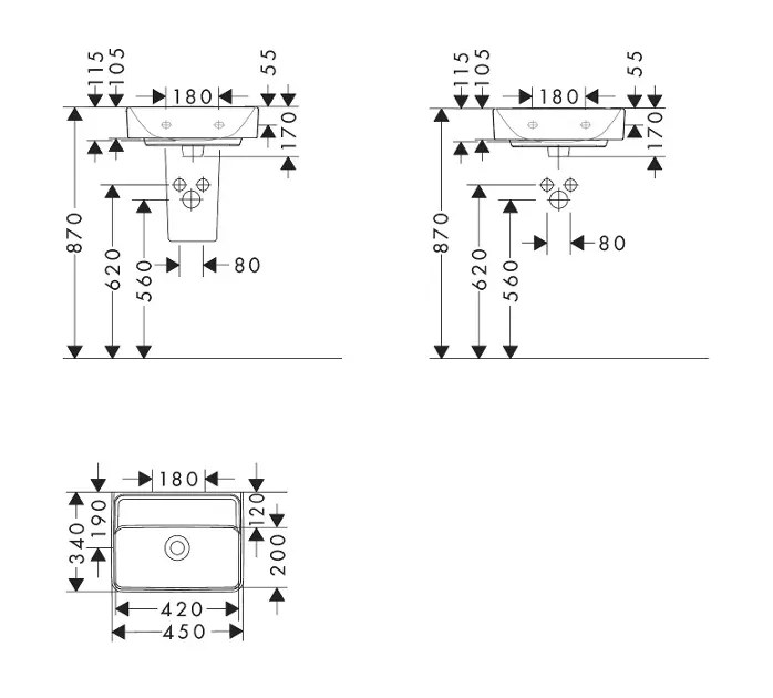 Lavamanos 450/340 sin orificio para grifo, sin rebosadero, SmartClean