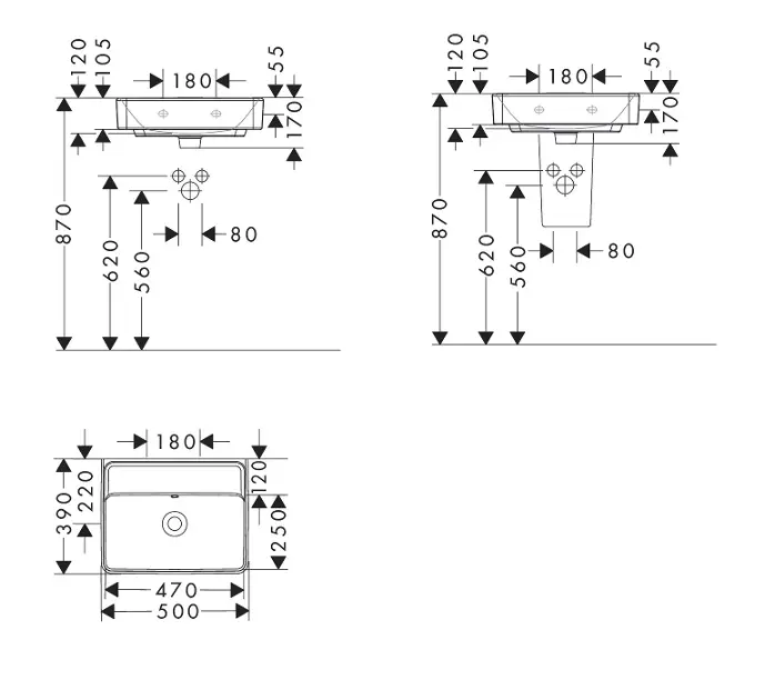 Lavamanos 500/390 sin orificio para grifo, con rebosadero, SmartClean