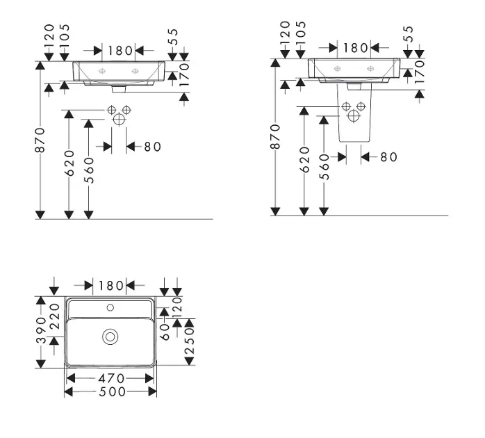 Lavamanos 500/390 con orificio para grifo, sin rebosadero, SmartClean