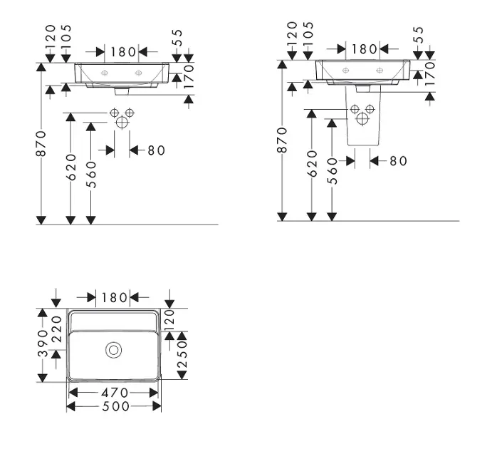 Lavamanos 500/390 sin orificio para grifo, sin rebosadero, SmartClean