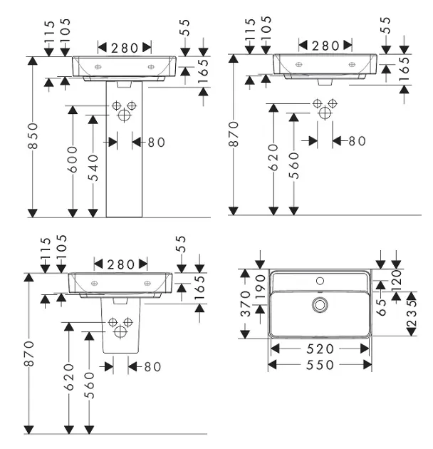 Lavabo Compact 550/370 con orificio para grifo, con rebosadero,... Mostrar toda la descripción
