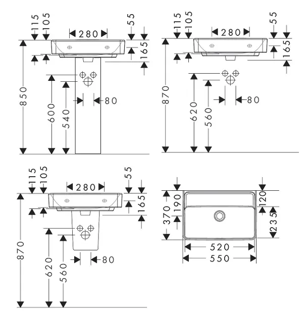 Lavabo Compact 550/370 sin orificio para grifo, sin rebosadero, SmartClean
