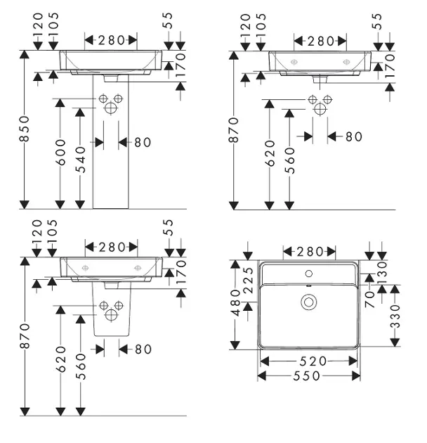 Lavabo sobre encimera 550/480 con orificio para grifo y rebosadero