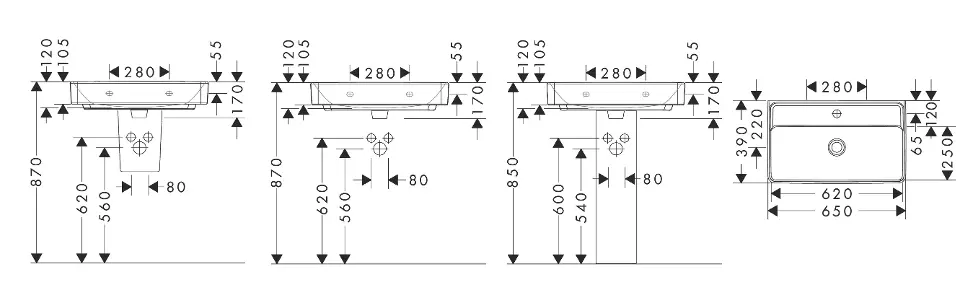 Lavabo Compact 650/390 con orificio para grifo, sin desagüe