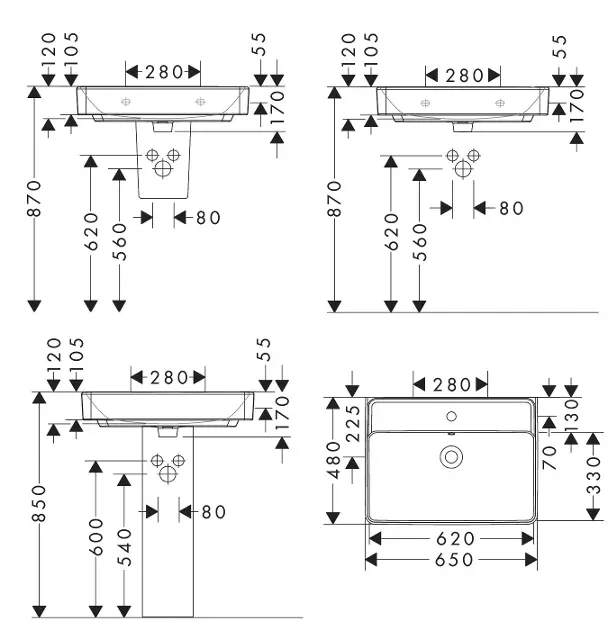 Lavabo 650/480 con orificio para grifo, sin rebosadero