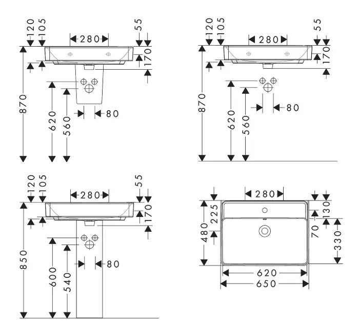 Lavabo 650/480 con orificio para grifo, sin rebosadero, SmartClean