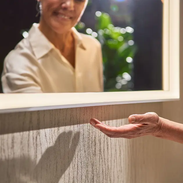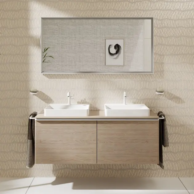 Los espejos de baño de esta serie aportarán a su baño una elegancia sofisticada y un cuidado de nivel profesional. Su diseño rectangular minimalista favorece la armonía del ambiente. Los espejos son altamente resistentes a la humedad y cuentan con calefacción AntiFog, que evita que se empañen incluso después de un largo baño caliente. La iluminación LED integrada en el contorno se controla mediante el sistema táctil SmartTouch. La colección incluye espejos con una única tonalidad de luz (4000 K) o con varias temperaturas de color (2700–6500 K). También disponen de función de atenuación continua y apagado automático. Están disponibles en distintos tamaños, tanto en formato horizontal como vertical.