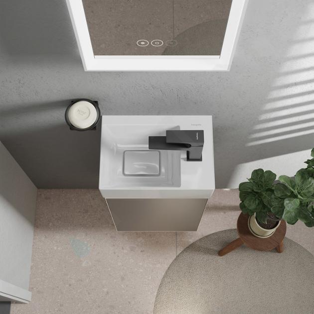 Hansgrohe Xevolos E es una serie premium de lavabos y muebles de baño que destaca por su diseño arquitectónico, funcionalidad y atención al detalle. Los lavabos están fabricados con cerámica sanitaria resistente y cuentan con el acabado SmartClean, que facilita la limpieza y garantiza una larga durabilidad. El mobiliario Xevolos E ofrece una amplia gama de armarios y soluciones de almacenamiento con un elegante diseño cúbico, disponible en diferentes combinaciones de colores y acabados.