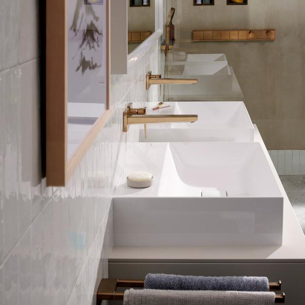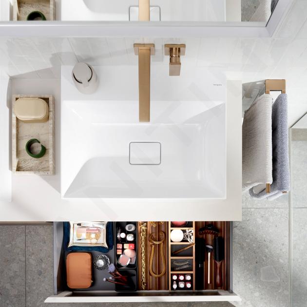Hansgrohe Xevolos E es una serie premium de lavabos y muebles de baño que destaca por su diseño arquitectónico, funcionalidad y atención al detalle. Los lavabos están fabricados con cerámica sanitaria resistente y cuentan con el acabado SmartClean, que facilita la limpieza y garantiza una larga durabilidad. El mobiliario Xevolos E ofrece una amplia gama de armarios y soluciones de almacenamiento con un elegante diseño cúbico, disponible en diferentes combinaciones de colores y acabados.
