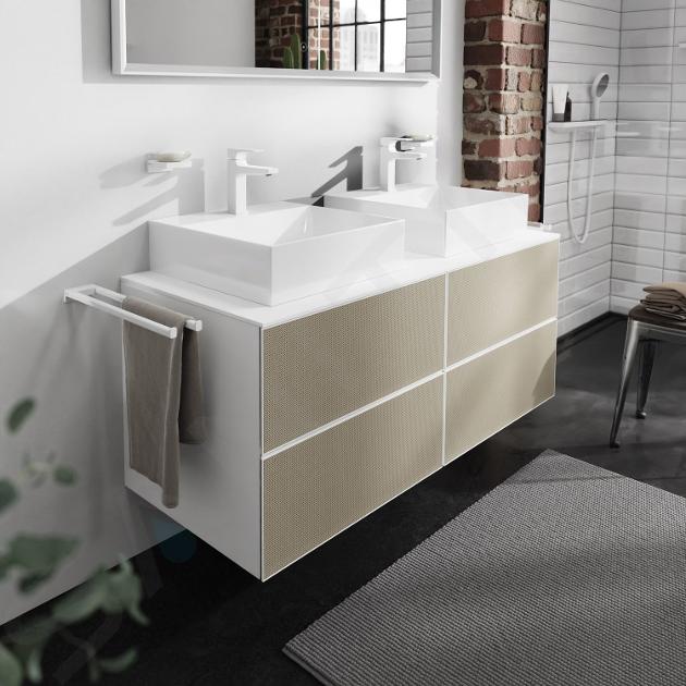 Hansgrohe Xevolos E es una serie premium de lavabos y muebles de baño que destaca por su diseño arquitectónico, funcionalidad y atención al detalle. Los lavabos están fabricados con cerámica sanitaria resistente y cuentan con el acabado SmartClean, que facilita la limpieza y garantiza una larga durabilidad. El mobiliario Xevolos E ofrece una amplia gama de armarios y soluciones de almacenamiento con un elegante diseño cúbico, disponible en diferentes combinaciones de colores y acabados.