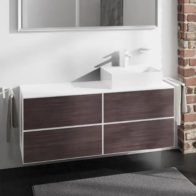 Hansgrohe Xevolos E es una serie premium de lavabos y muebles de baño que destaca por su diseño arquitectónico, funcionalidad y atención al detalle. Los lavabos están fabricados con cerámica sanitaria resistente y cuentan con el acabado SmartClean, que facilita la limpieza y garantiza una larga durabilidad. El mobiliario Xevolos E ofrece una amplia gama de armarios y soluciones de almacenamiento con un elegante diseño cúbico, disponible en diferentes combinaciones de colores y acabados.