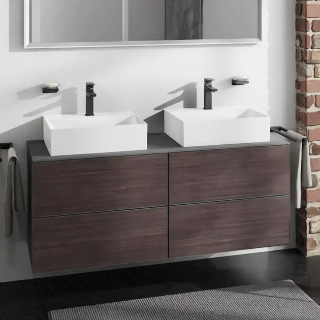 Hansgrohe Xevolos E es una serie premium de lavabos y muebles de baño que destaca por su diseño arquitectónico, funcionalidad y atención al detalle. Los lavabos están fabricados con cerámica sanitaria resistente y cuentan con el acabado SmartClean, que facilita la limpieza y garantiza una larga durabilidad. El mobiliario Xevolos E ofrece una amplia gama de armarios y soluciones de almacenamiento con un elegante diseño cúbico, disponible en diferentes combinaciones de colores y acabados.