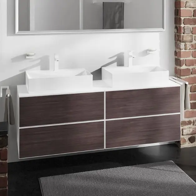 Hansgrohe Xevolos E es una serie premium de lavabos y muebles de baño que destaca por su diseño arquitectónico, funcionalidad y atención al detalle. Los lavabos están fabricados con cerámica sanitaria resistente y cuentan con el acabado SmartClean, que facilita la limpieza y garantiza una larga durabilidad. El mobiliario Xevolos E ofrece una amplia gama de armarios y soluciones de almacenamiento con un elegante diseño cúbico, disponible en diferentes combinaciones de colores y acabados.