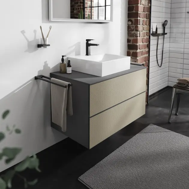 Hansgrohe Xevolos E es una serie premium de lavabos y muebles de baño que destaca por su diseño arquitectónico, funcionalidad y atención al detalle. Los lavabos están fabricados con cerámica sanitaria resistente y cuentan con el acabado SmartClean, que facilita la limpieza y garantiza una larga durabilidad. El mobiliario Xevolos E ofrece una amplia gama de armarios y soluciones de almacenamiento con un elegante diseño cúbico, disponible en diferentes combinaciones de colores y acabados.