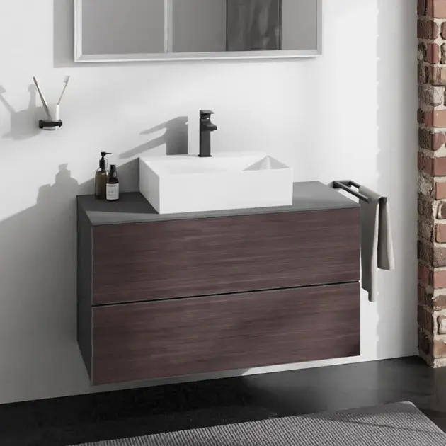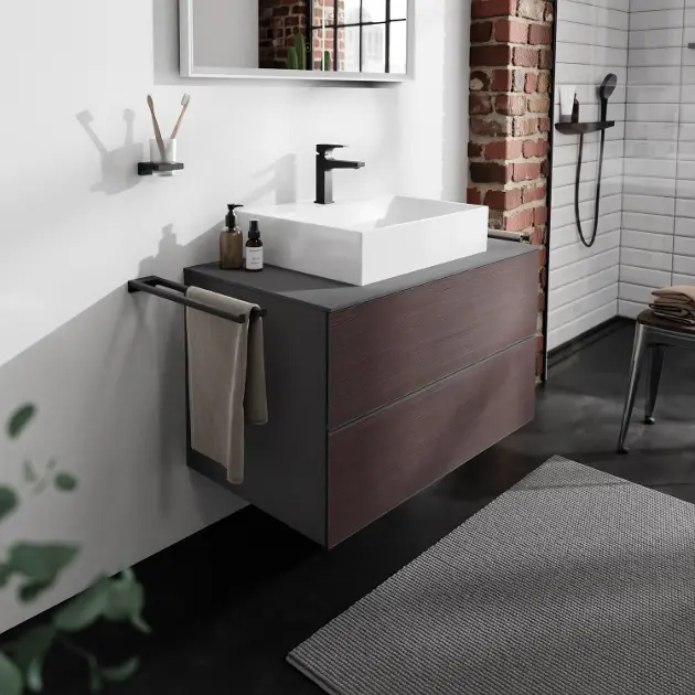 Hansgrohe Xevolos E es una serie premium de lavabos y muebles de baño que destaca por su diseño arquitectónico, funcionalidad y atención al detalle. Los lavabos están fabricados con cerámica sanitaria resistente y cuentan con el acabado SmartClean, que facilita la limpieza y garantiza una larga durabilidad. El mobiliario Xevolos E ofrece una amplia gama de armarios y soluciones de almacenamiento con un elegante diseño cúbico, disponible en diferentes combinaciones de colores y acabados.