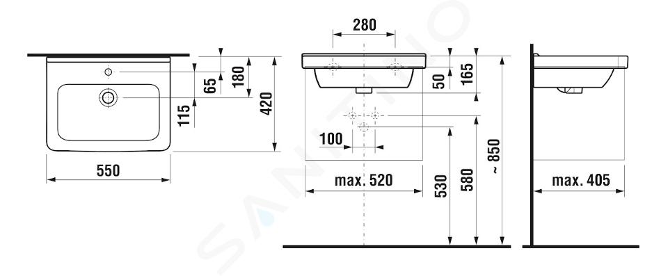 Lavabo 55 cm con agujero para grifo dimensiones: 550 x 420 x 165 mm... Mostrar toda la descripción