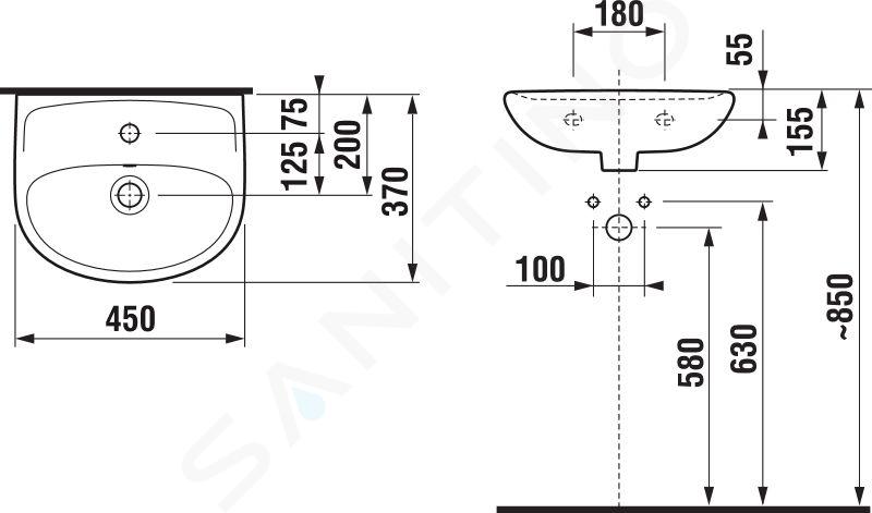 El lavamanos de forma clásica semicircular está equipado con desbordamiento, por lo que no tienes que preocuparte por inundar la habitación si dejas el grifo abierto durante demasiado tiempo. El agua no se derramará, sino que se evacuará a través del orificio de desbordamiento. El lavamanos tiene un orificio central para la grifería, aunque la grifería, el sifón y otros accesorios no están incluidos en el suministro. Todos ellos se deben pedir por separado.