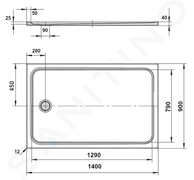 Plato de ducha CAYONOPLAN color blanco dimensiones: 1400 x 900 x 25 mm... Mostrar toda la descripción