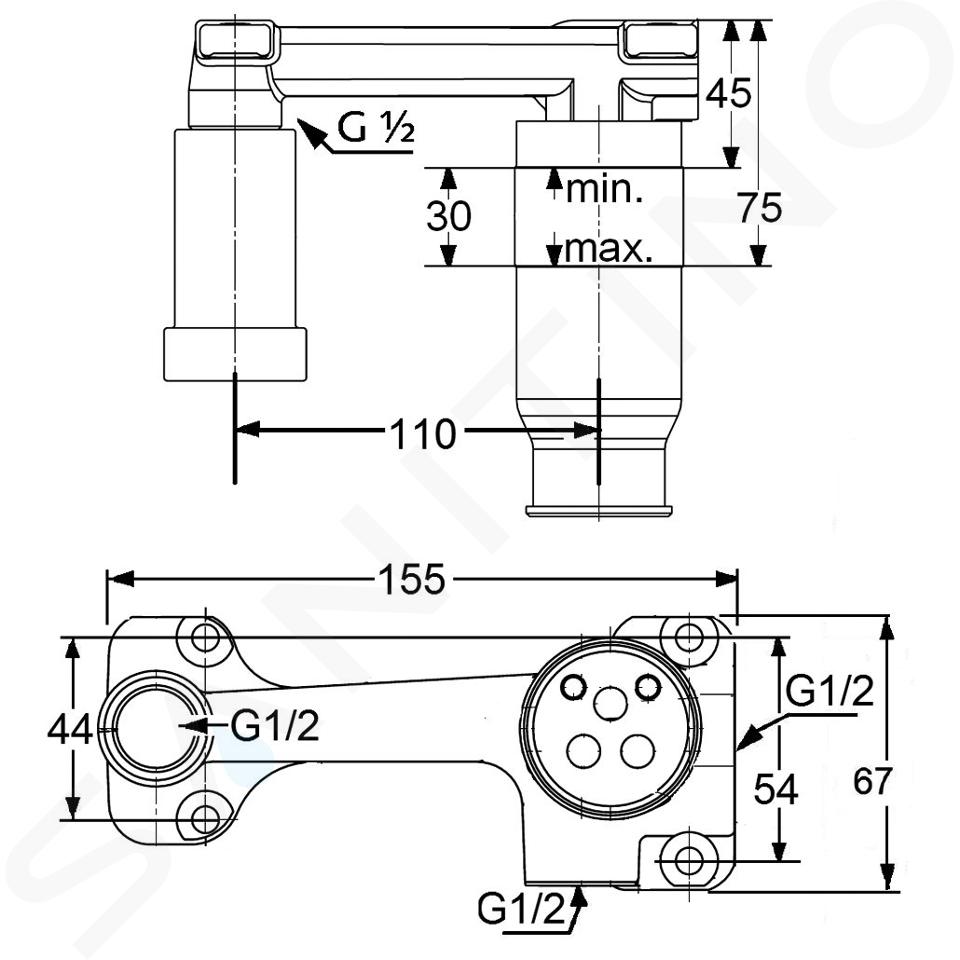 Cuerpo de montaje empotrado para grifo de lavabo