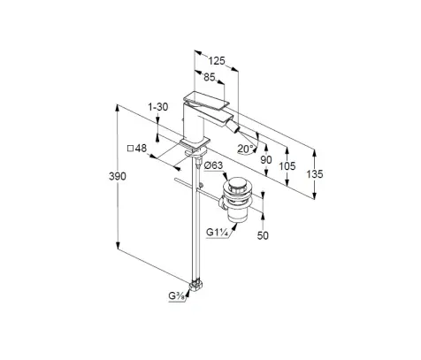 Grifo monomando de bidé Decus color negro mate altura del grifo 135 mm... Mostrar toda la descripción