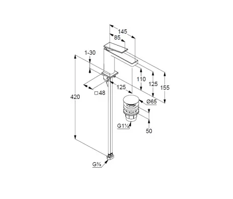 Grifo de pie para lavabo con desagüe color cromo altura del grifo 155... Mostrar toda la descripción