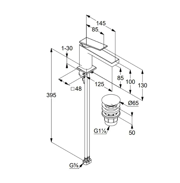 Grifo de pie para lavabo con desagüe color blanco mate altura del... Mostrar toda la descripción