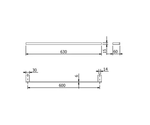 Toallero Vela C color negro mate material metal dimensiones 630 x 60... Mostrar toda la descripción
