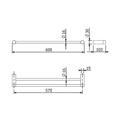 Toallero doble Vela R color oro cepillado material metal dimensiones... Mostrar toda la descripción