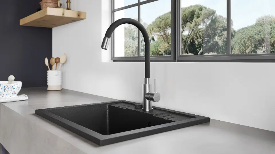 Los grifos de fregadero de la serie Ferro están diseñados para proporcionarte la máxima comodidad durante el lavado. Están fabricados de cromo de alta calidad y ofrecen un aspecto simple pero elegante. La serie Ferro se caracteriza por un brazo flexible, que es tan elástico que puedes moverlo cuando lo necesites. Además, no tienes que limitarte a un solo diseño, ya que Ferro viene con diferentes variantes de color. Elige de nuestra oferta el color de caño que mejor se adapte al estilo de tu cocina.