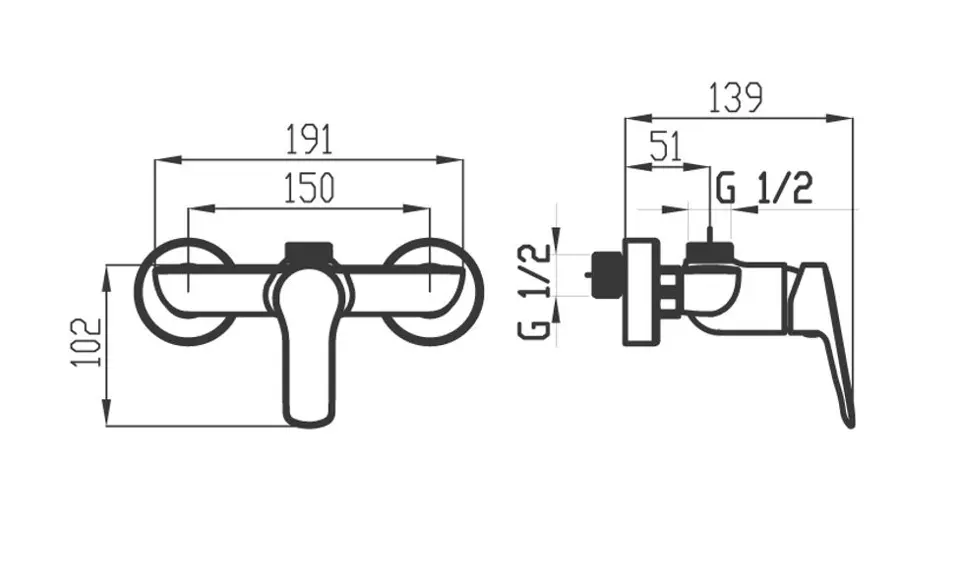 Grifo de ducha de pared sin accesorios