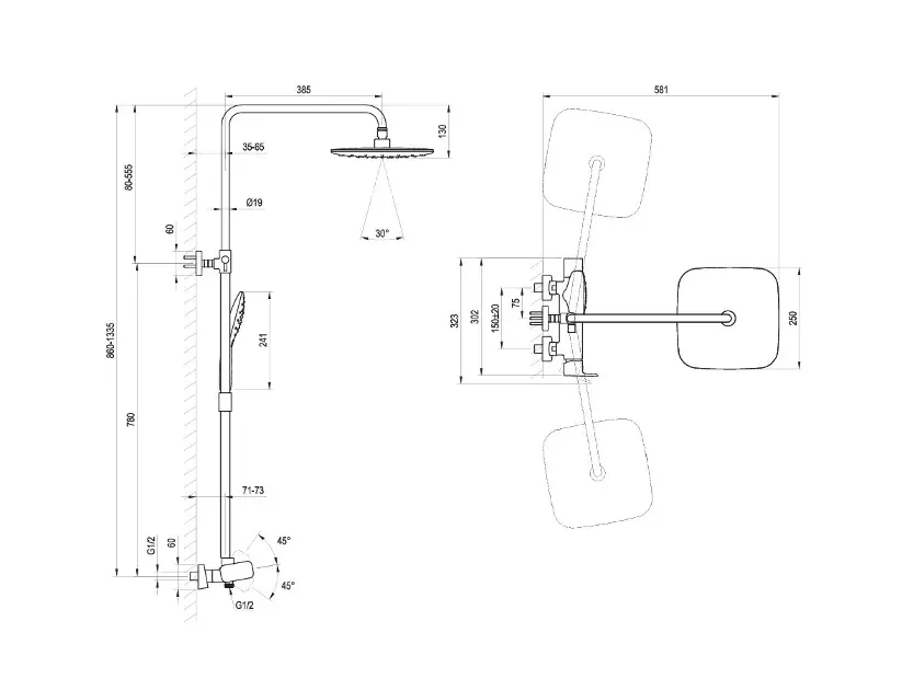 Sistema de ducha TD F 098.00CR consta de: grifería mural color cromo... Mostrar toda la descripción