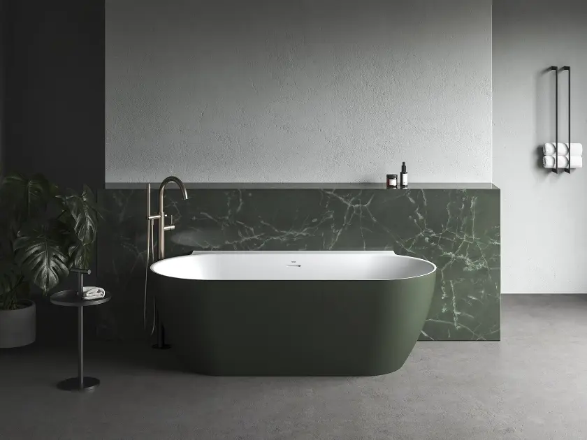 Bañera independiente contra la pared color Grey Green/blanco color... Mostrar toda la descripción