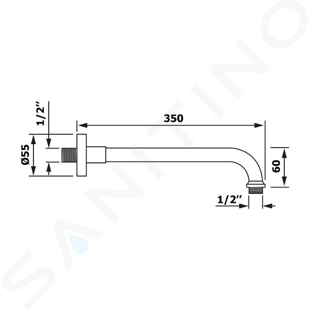 Brazo de ducha longitud 350 mm, 1/2" material: latón acabado: bronce Mostrar toda la descripción