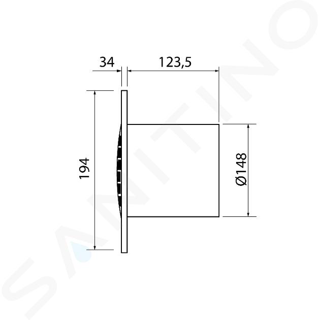 El diseño permite un empotramiento máximo en la pared, con solo la rejilla decorativa sobresaliendo de la superficie. El ventilador se pone en marcha con un interruptor independiente o con un interruptor que controle la iluminación.