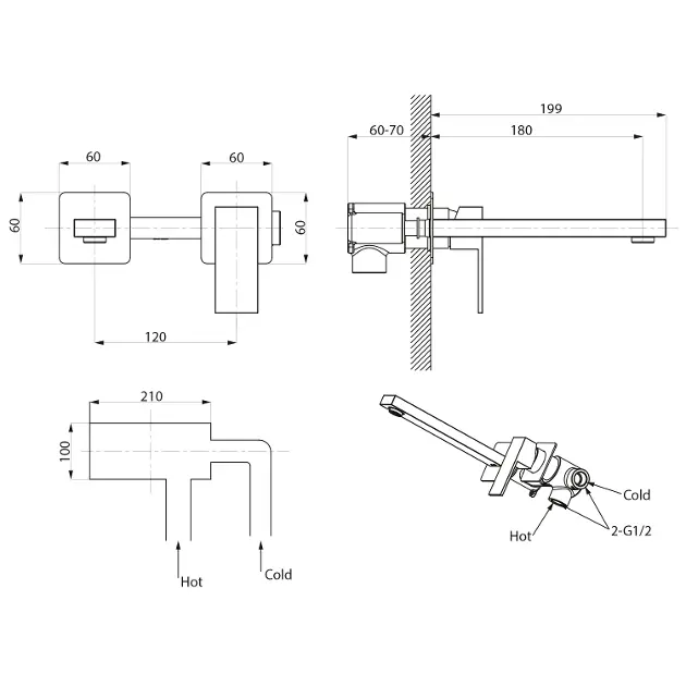 Grifo de lavabo empotrado, con cuerpo